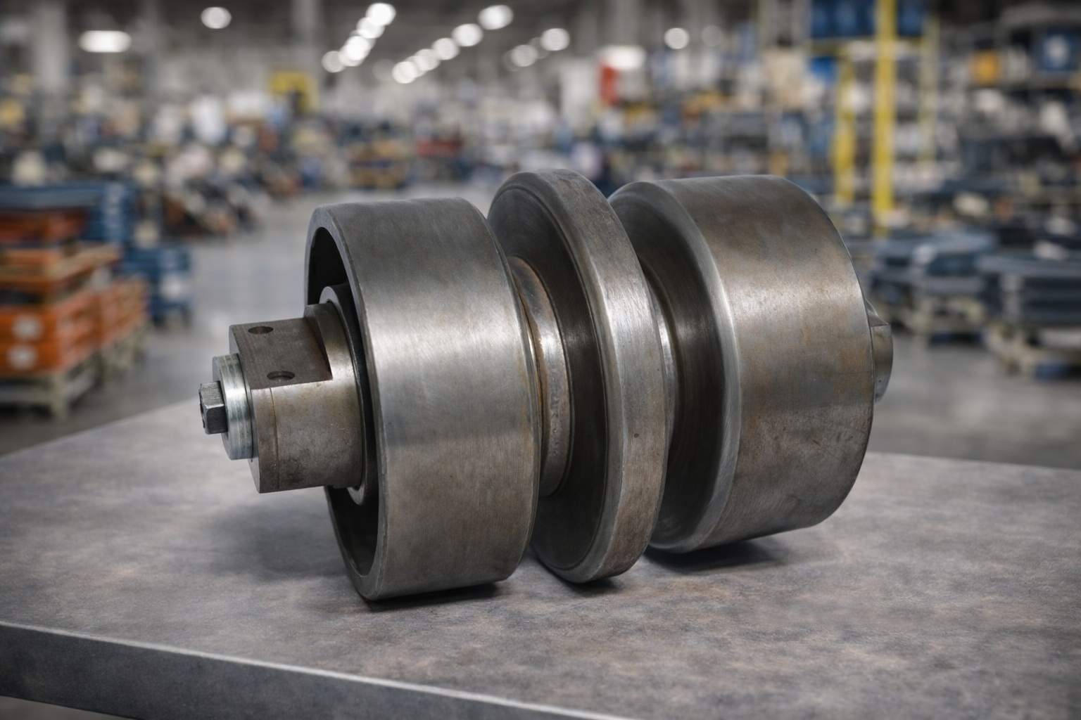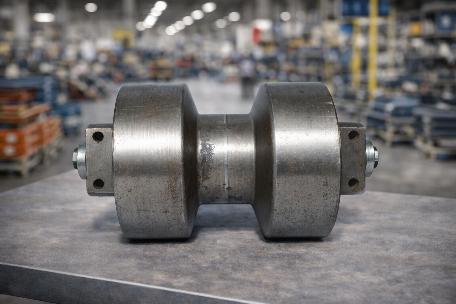 Heavy-duty Plain Roller Assembly designed to support smooth track movement, stability, and reliable performance in track harvester operations...